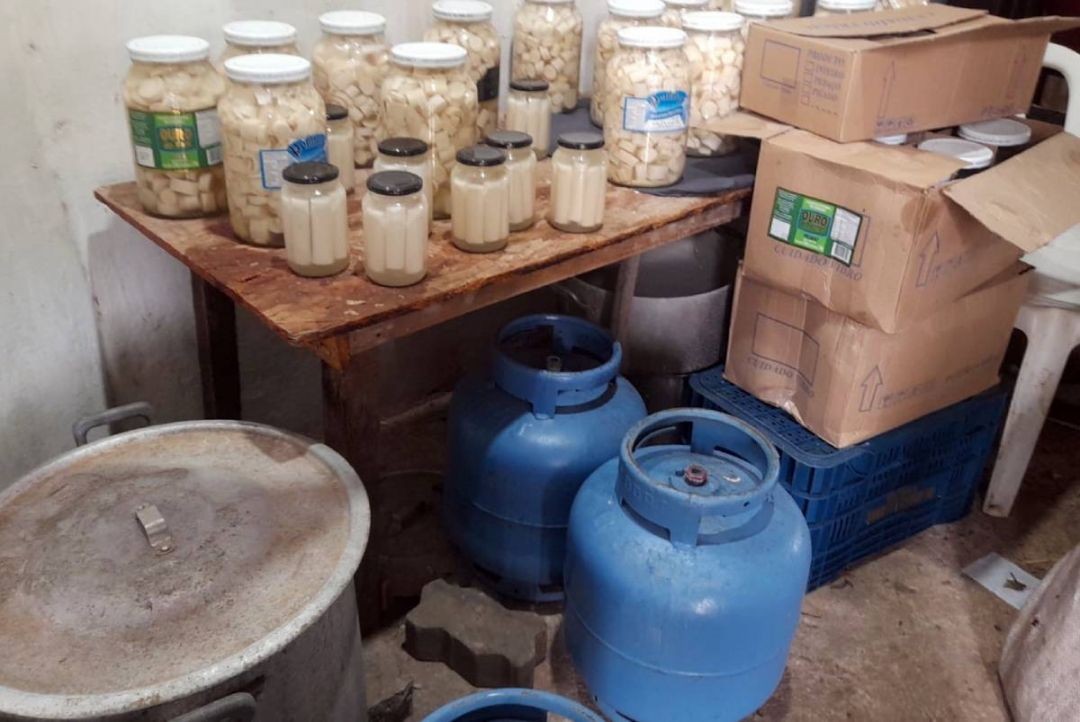 Ação conjunta com a Polícia Civil resultou no descarte de conservas de palmito em uma fábrica clandestina no Igarapés.