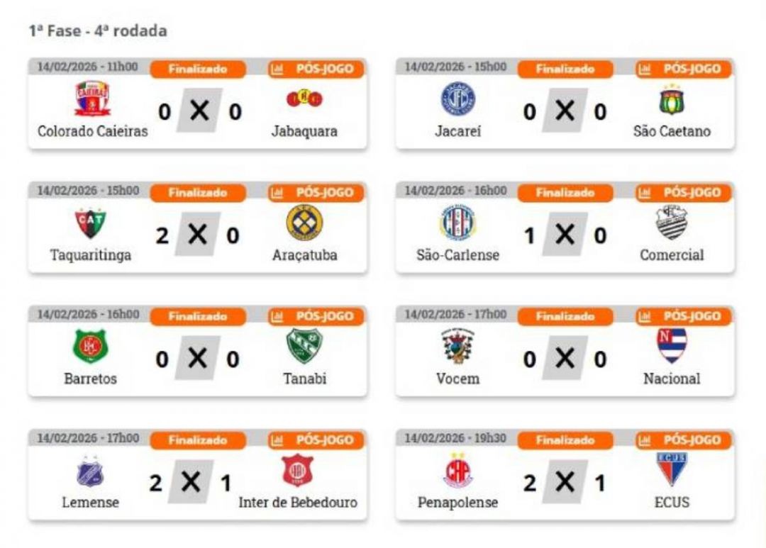 A próxima rodada já tem data marcada. No sábado (21), às 15h, o Jacareí volta a campo para enfrentar o Nacional, no estádio Nicolau Alayon, em São Paulo. No mesmo horário, o São Caetano recebe a Penapolense, no Anacleto Campanella.