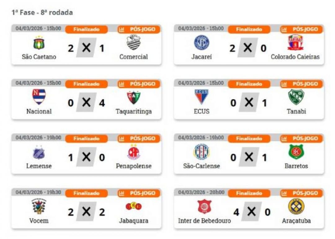 Com o resultado, o Jacareí chegou aos 16 pontos e, até o encerramento dos jogos da noite que completaram a oitava rodada, ocupa a quinta colocação na tabela. O desempenho mantém a equipe dentro da zona de classificação para a próxima fase — oito clubes avançam ao mata-mata.